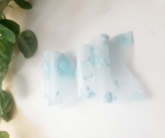 Blue Embroidered Lace Transparent Hair Bow | LovelyExpressionLLC