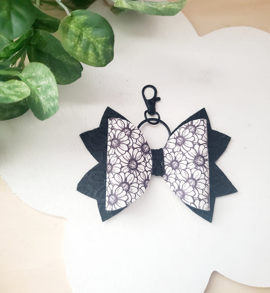 Laced With Black and White Sunflowers Bow Keychain | LovelyExpressionLLC